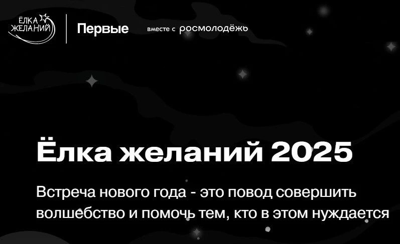 Общероссийским общественно-государственным движением детей и молодежи «Движение первых» проводится ежегодная Всероссийская акция «Елка желаний» (далее — Акция), приуроченная к празднованию Нового года. В рамках Акции люди, желающие совершить добрый поступок, исполняют новогодние желания тех, кто нуждается в помощи. В 2025 году нуждающимися в помощи признаются дети от 3 до 17 лет, имеющие ограничения по здоровью, с инвалидностью, с состоянием здоровья, угрожающим жизни, дети из семей с доходом ниже прожиточного минимума, дети-сироты и дети без попечения родителей, дети из семей участников СВО, дети – жители ЛНР, ДНР, Запорожской и Херсонской областей, а также из семей, постоянно проживающих в Белгородской, Курской и Брянской областях, и пострадавших и/или вынуждено покинувших место жительства в связи с обстрелами. По условиям Акции сбор заявок на участие проходит до 20.12.2025, исполнение желаний с 05.12.2025 по 28.02.2026.