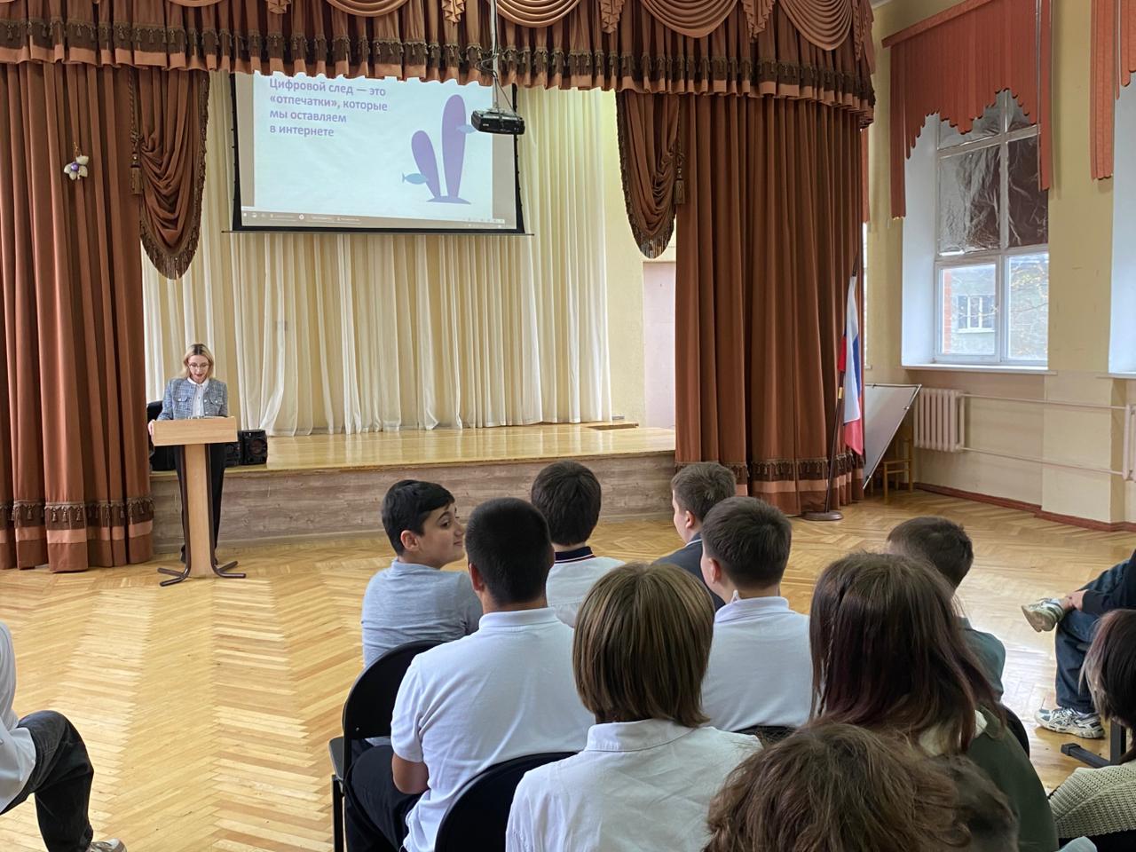 Во вторник (11.11) в актовом зале был проведен урок для 8 классов на тему «Как цифровые привычки меняют мир» всероссийского просветительского проекта «Цифровой ликбез», который был подготовлен экспертами «СКБ Контур».